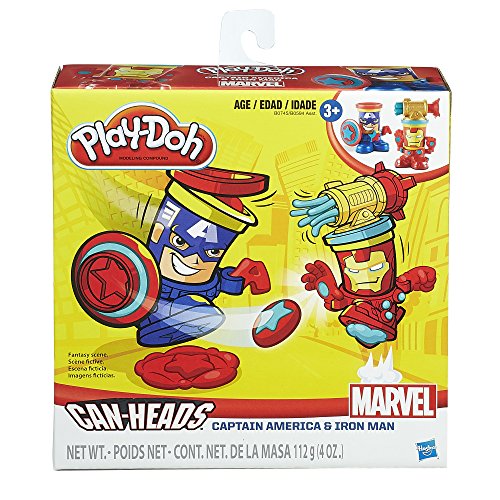 Take the lid off your imagination and create your own smash 'n bash adventures with Can-Heads heroes! Now iconic Play-Doh cans are part of the action as you re-create your favorite Marvel Super-Hero battles. Imagine your own can-to-can combat as Iron Man and Captain America team up with their stamper bases, rolling cutter with removable shield, and Repulsor extruder! Copyright Marvel. Hasbro and all related terms are trademarks of Hasbro.Feature
