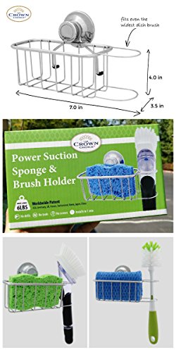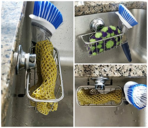 -. Title : PATENTED Suction Sponge Holder and Brush Caddy for Kitchen Sink, Shower, Bathroom, Tub | Best PATENTED Stainless Steel Kitchen Sponge Caddy Organizer Tray