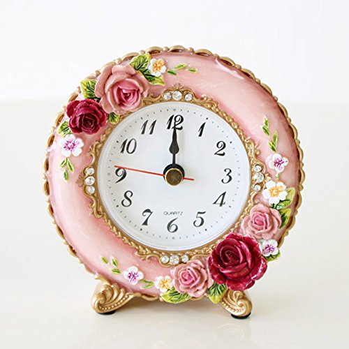 -. Title : ロイヤルローズ置時計 ピンク 丸型 時計