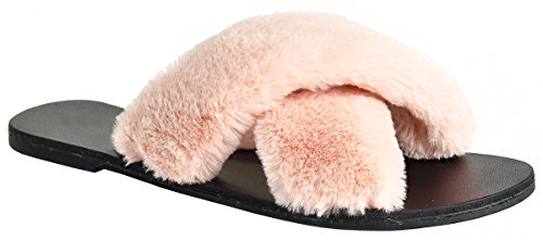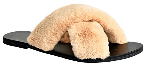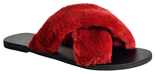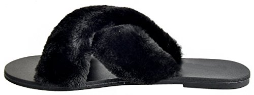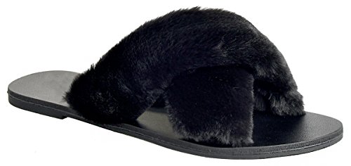 Product DescriptionChannel your wild side in these criss cross fur slide sandals from LUSTHAVE.0
