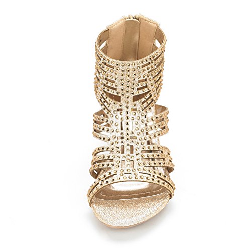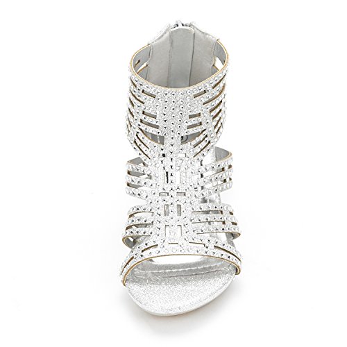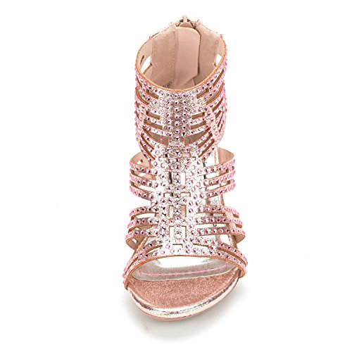 -. Feature : Rhinestones Studs Embellishment / Material: Shiny Pearl Suede(man-made) / Heel Height: 1.5" (approx) / Features a zipper heel closure / Elegant Party Sandals for Any Occasion