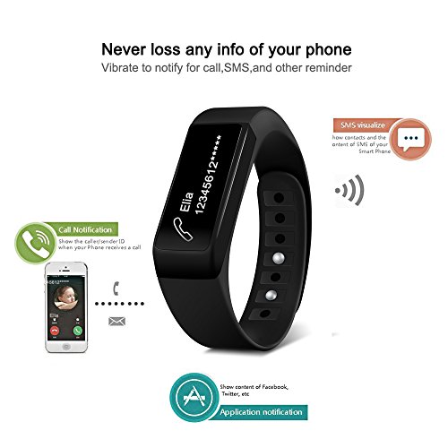 #x1F44D;#x1F44D; Features: You can use the bracelet by "gesture control" or "touching" the screen ▶?Call Notification Show caller ID when receive a call ▶?SMS Notification Show the content of SMS of your smart phone ▶?App message notification Show content of Facebook, Twitter, WeChat, QQ, etc. ▶?Pedometer Track the steps and distance you walk or run ▶? Calories Tracking Track the calories burned, control the calorie intake ▶?Sleep Monitor Track the quality of your sleep, the light sleep and the deep sleep ▶?Silent Alarm Wake you up by vibration without disturbing others ▶?Sedentary Remind Remind you the time to drink, the time to exercise, the time to sleep etc ▶?Anti-lost It gives you alarm when the distance between your phone and bracelet out of the range ▶?Remote Camera Smart bracelet can control the camera of your smartphone, take picture by yourself ? Charging: Built-in USB charging for you to convenient to charge the bracelet with computer or power bank without other charging components ? Waterproof: IP67 water resistant to ensure you can use in daily water-related activities (NOT for swimming or showering!) ▶?Note: 1. Please don't wear it when you are swimming or showering. 2. The diameter range of band: 32-55mm or the available range is 13.5-22 cm, you can measure the size of the wrist. 3. The APP you could download: "ZeronerHealth" or "linksmart" ? Compatible: Bluetooth 4.0, Android 4.3 or above and iOS 8 or above devices Suitable for: All iPhone Version, Samsung S7/Note 7/S8, Huawei Mate 9/P9/P10, etc. Package Included: ♥1 x I5 PLUS Smart Bracelet ♥1 x User English Manual 0