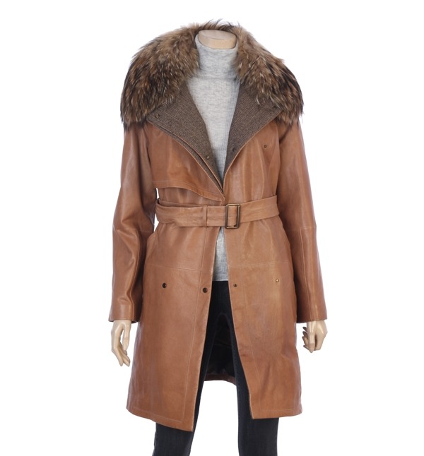 LYNN, 풍성한 퍼카라장식으로 고급스럽고 한층 보온성이 우수한 레더 트렌치코트입니다