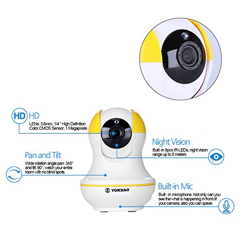 -. Title : WiFi IP Camera, YOKKAO P2P Wireless 720P HD Home Security Camera Baby Monitor Support Pan and Tilt/ Two Way Audio/ Night Vision/ Motion Detection with 32G TF Card