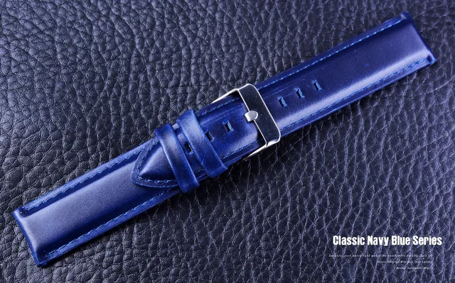 [해외]Forsining 품질 내구성 네이비 블루 정품 가죽 벨트 시계 액세서리 시계 스트랩 18 20 미리메터 줄