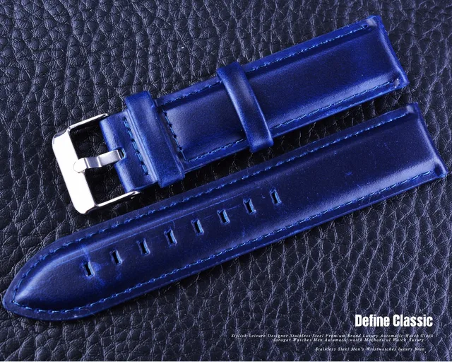 Forsining 품질 내구성 네이비 블루 정품 가죽 벨트 시계 액세서리 시계 스트랩 18 20 미리메터 줄