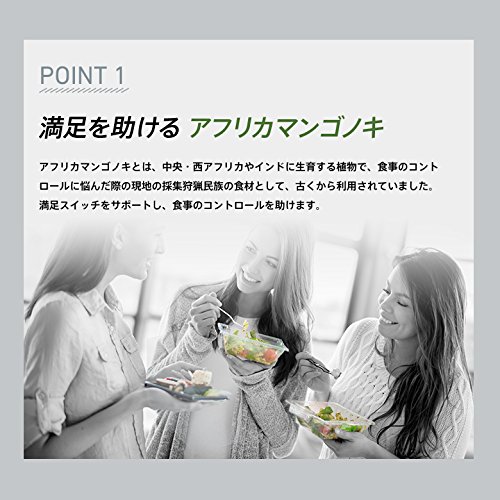 - アフリカマンゴノキ配合。アフリカマンゴノキとは、中央・西アフリカやインドに生育する植物で、食生活のコントロールに悩んだ際の現地の採集狩猟民族の食材として、古くから利用されていました。 満足スイッチをサポートし、食事のコントロールを助けます。
