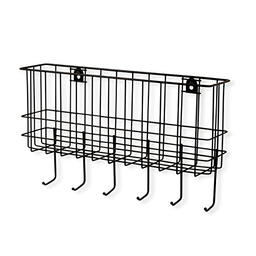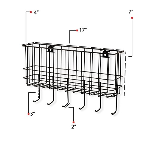 - Space Saver: This nifty and compact wire basket with hooks is a great addition to your home, it will create extra floor space while helping you hang your everyday essential needs. It is great for storing keys, hat, coat, bag, umbrella, dog leash and cat collar.