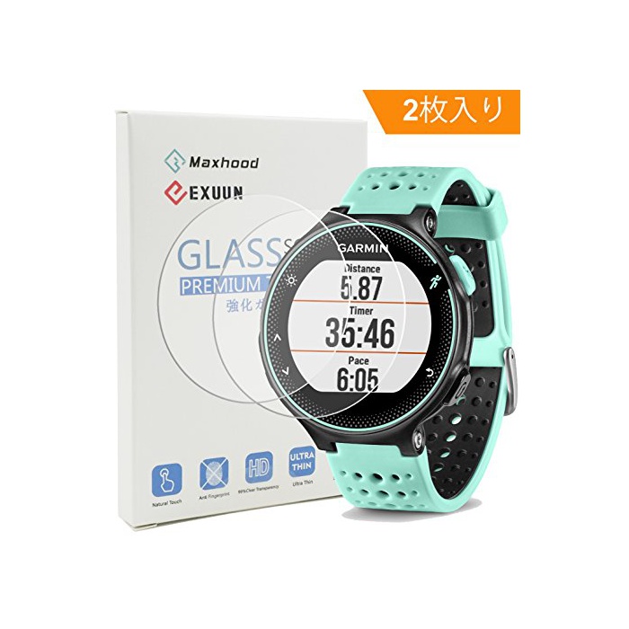 원본상품명: 【Maxhood】(2枚入り) GARMIN(ガミン) ForeAthlete 235J 230J 225J 220J 630J 620J 化ガラスフィルム, 9H硬度 0.3mm 超薄型 2.5