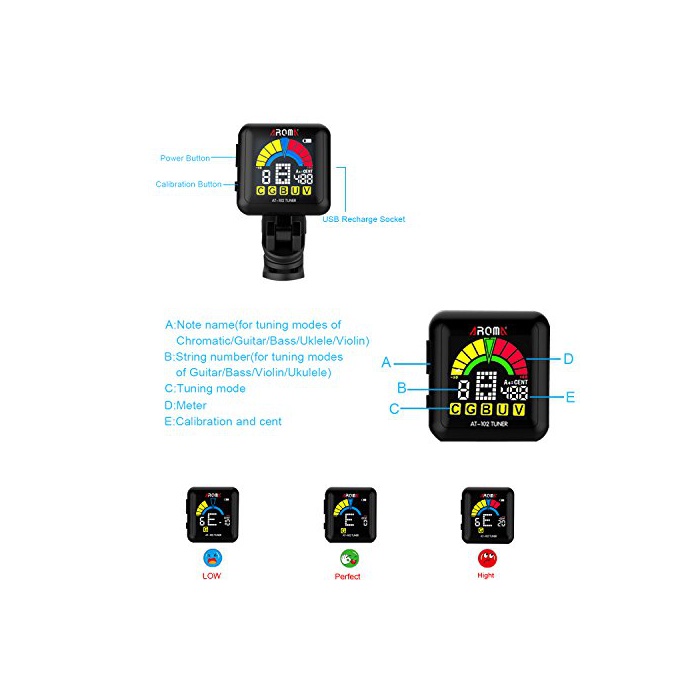 AROMA 클립식 전자 튜너 360도 회전 조작 간단