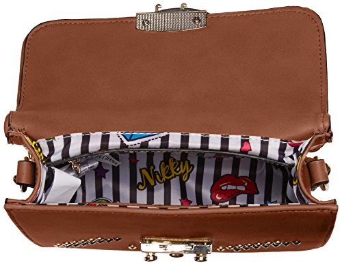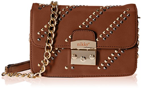 Nikky Women's Studded Chain Strap Crossbody Shoulder Bag, Brown, One Size