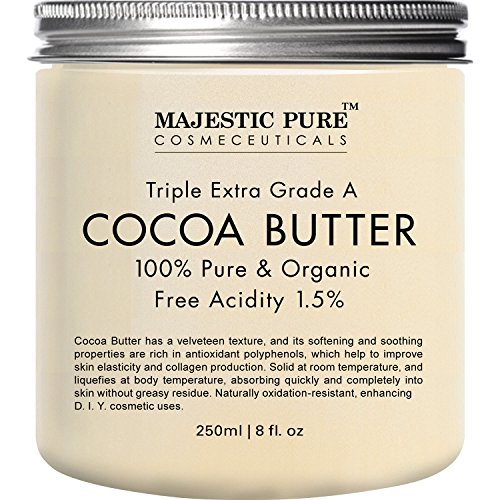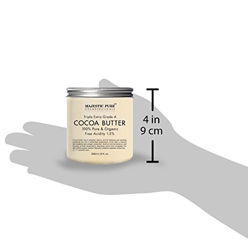 - Premium grade, 100 % pure and organic virgin cold-pressed raw unrefined cocoa butter from Ecuador; free acidity 1.5%; best raw cocoa butter for scar removal; packaged in USA