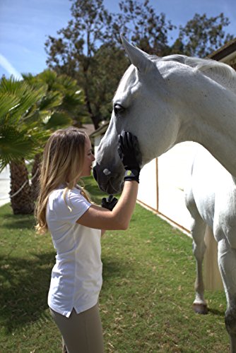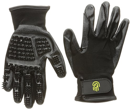 Changing the way, you bathe, shed and groom. Hands on gloves are a revolutionary concept which reaches far beyond the traditional curry combs, mitts, scrubbers and shedders on the market today. See for yourself why the all-in-one shedding/bathing/grooming gloves are outperforming all other products across the board. Professionals 1 Choice: 1) Wet or dry, our 5 fingered grooming gloves are unbeatable. 2) The perfect combination of scrubbing nodules on fingers and palm. 3) Your gloves will not slip or fall off even when wet and soapy. 4) Best shedder on the market; it simply and easily releases accumulated hair. 5) Massages muscles and stimulates circulation while helping to distribute natural oils for a healthy skin and coat. 6) The gloves tactile touch gently cleans sensitive areas like legs, faces, ears and tight body contours. 7) With its versatile, flexible grip you can easily handle water hoses, shampoo bottles, lead ropes, leashes, or anything else you may need with your gloves on. 8) Relaxes and helps you naturally build a bond with your animals. 9) Manure and other foul-smelling stains are much easier to clean with your hands on gloves. 10) Lightweight and extremely durable, doesn’t crack, tear or mildew even under heavy grooming and bathing conditions 11) Animals favor the Hands-on touch far better than any other grooming & massage products 12) Most animals will gravitate to you wanting more grooming and petting time 13) Hands-on grooming and petting allows you to connect with your animals on a level far beyond other grooming products 14) Your hands and fingernails stay clean using hands on gloves. 15) Compact, easily fits in your pocket, grooming caddy, tote or bag.Feature