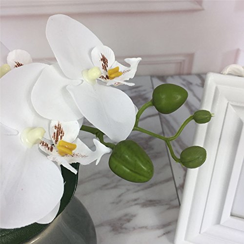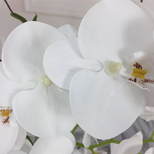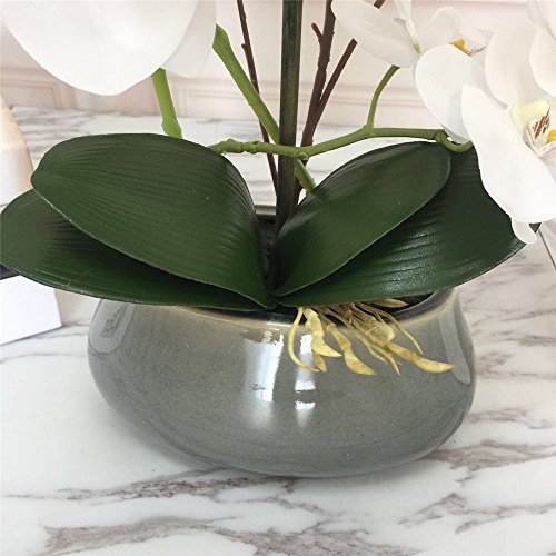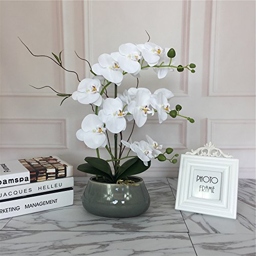 Large Lifelike Silk Orchid with Decorative Ceramic Vase,Vivid Artificial Flower Arrangement,Potted Orchid Plant,White