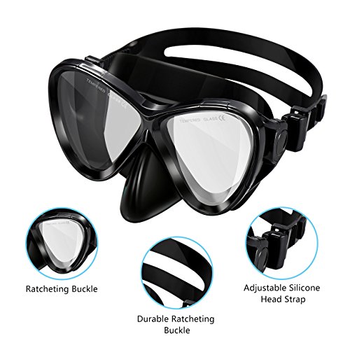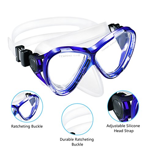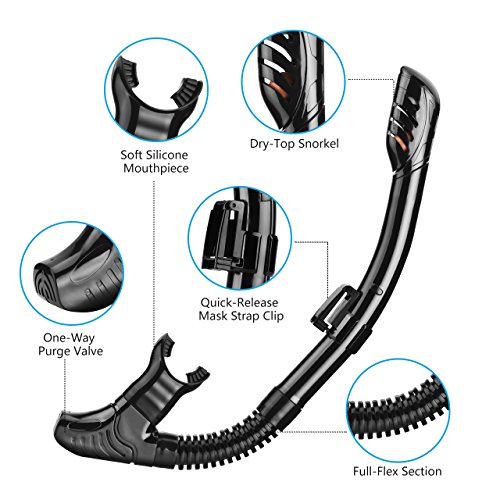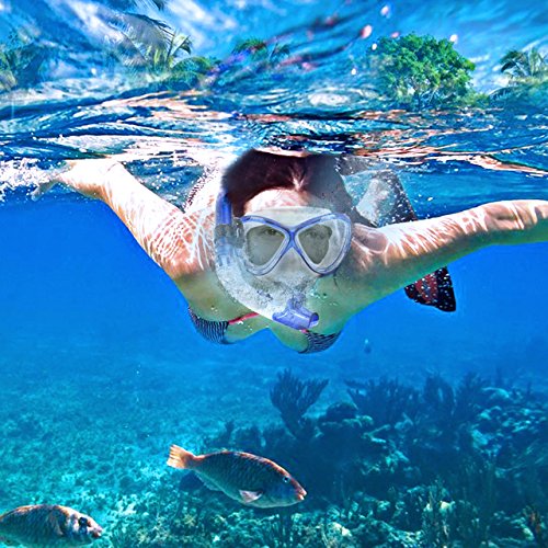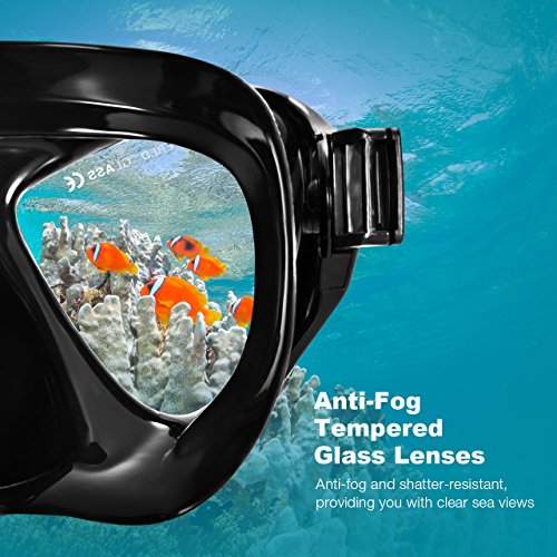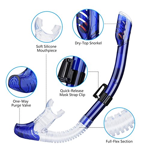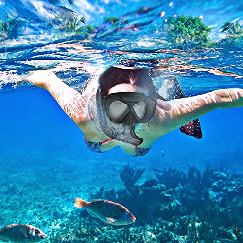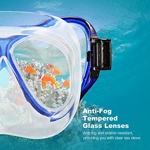 OMORC Adults Tempered Glass Diving and Dry Top Anti-Fog Panoramic Scuba Mask, Perfect for Snorkeling/Swimming