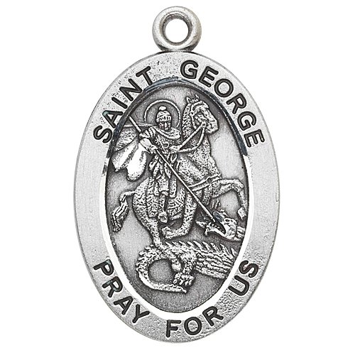 -. Title : Sterling Silver Oval Medal Necklace Patron Saint St. George with 20" Chain in Gift Box Catholic Saint George Patron Saint of Boy Scouts, England, Soldiers, Military Men, Farmers
