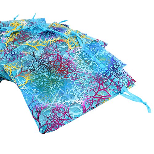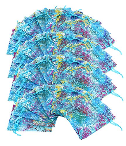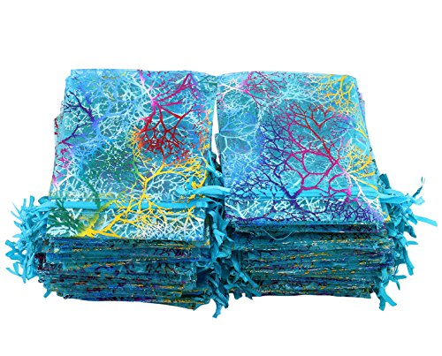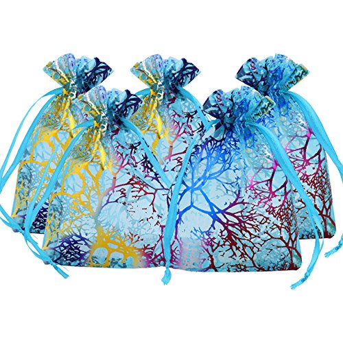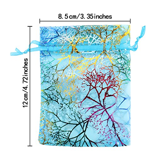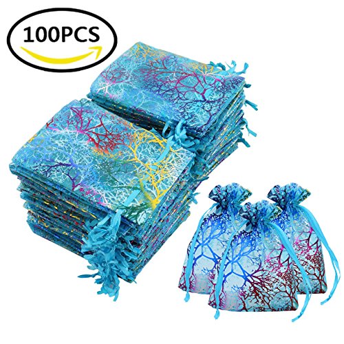 100Pcs Organza Drawstring Pouches with Coralline Print, looks more beautiful and elegant, enough to meet your needs.