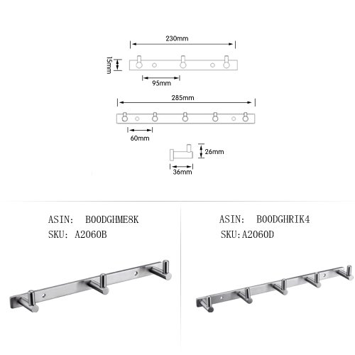 KES A2160H3-2 BATHROOM TOWEL RAIL/RACK WITH 3 HOOKS WALL MOUNT SUS304 STAINLESS STEEL, BRUSHED FINISH