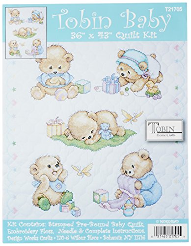 Tobin Baby Bears Quilt Stamped Cross Stitch Kit, 34 by 43-Inch