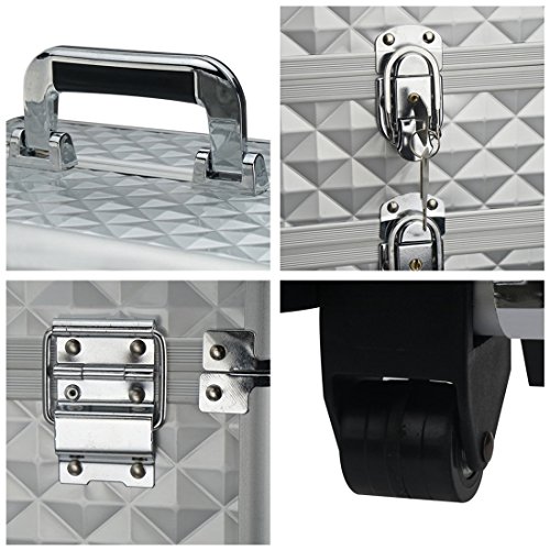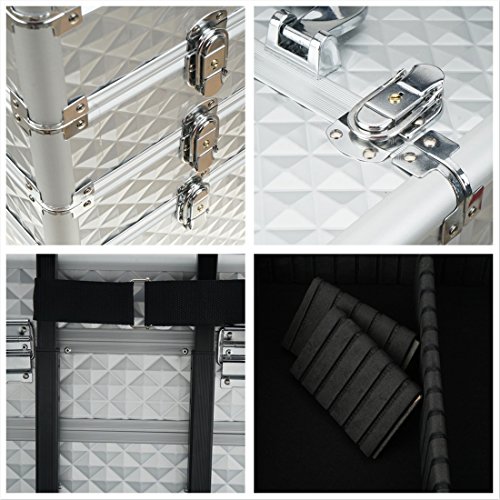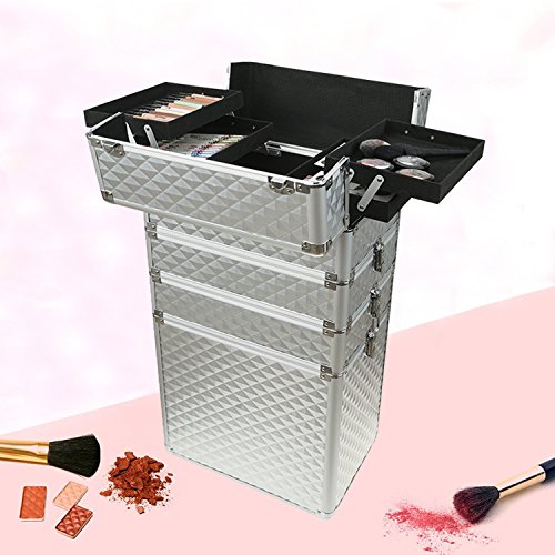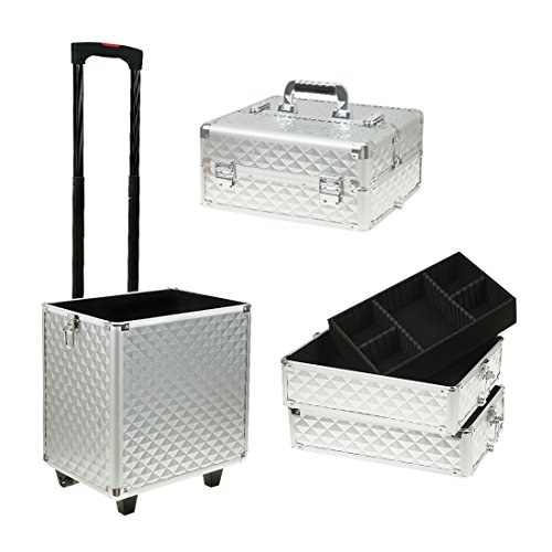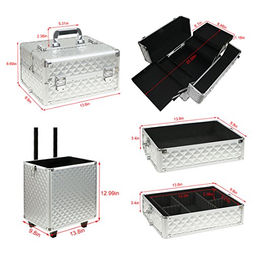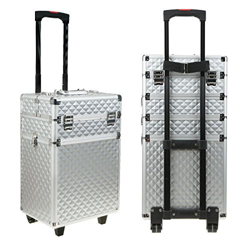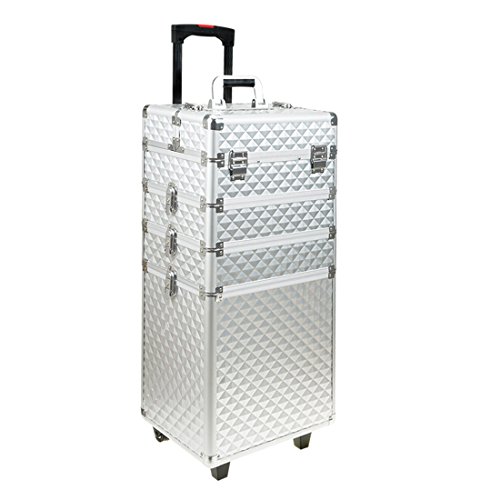 Fashionable and Portable silver 4 in 1 Aluminum Cosmetic Makeup Case Tattoo Box Perfect for Home Use and Travel. This beautiful designed cosmetic case comes with fashionable style, elegant color and easily transportable. Note: Airplane travel allowed. Features: 1. High Quality Aluminum Frame Finish Construction, Reinforced Aluminum Corners for Extra Durability 2. Adjustable Tray Dividers for Customizing Own Choice to Fit your Cosmetics Size 3. Heavy Duty Handle For Comfort And Carry 4. Versatile: ideal for travelling, work, cosmetics, and hairdressing 5. 2 wheels enables the trolley for easier transport 6. Safety: 8 sturdy latches with keys 7. Telescopic pull-out handle fixed by back sticky Velcro 8. Stylish chic design with sleek frame blends with any room decor 9. Suitable for for professional freelance make-up artist, hair stylist or nail technician salons, beauty center /institution 10. This is a very nice Christmas present for your girlfriend, wife, close friends, and friends. It's a big surprise for them. Specifications Overall Dimension: 13.8" x 9.8" x 26.8" (LWH) Net Weight: 15.4 lbs Package Included 1 x 4 in 1 Makeup train case 1 x 2 Keys We guarantee your 100% satisfaction. If you are not satisfied, please don't hesitate to contact us, we will better solver for you ." 0 |