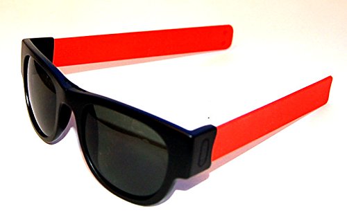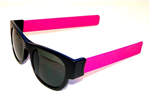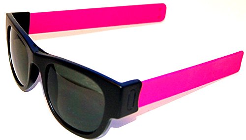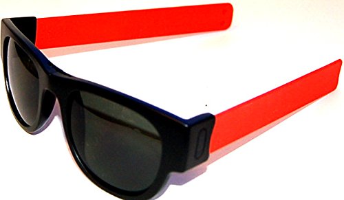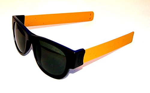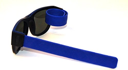 Product Description SlapSee Sunnies are the perfect accessory for the active lifedesign. With Slapsees there is no need to have any kind of a neck strap on your shades. When not in use 'slap' them to your wrist, handlebar or just about anything nearby. Slapsees are designed to form fit around most head sized so there is always a perfect fit. Slip them on and notice how the arms or temples firmly adjust to your head. Slap them away when you are not using them. The stylish frames are both durable and lightweight with the unique folding arms covered in tactile silicone. The dark tinted lenses have a UV 400 grading, which blocks 100% of harmful UV rays. Slapsee designed storage bag included 0