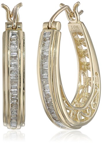 -. Title : 10K Yellow Gold Diamond Hoop Earrings (1/4 cttw)