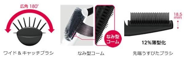 | 広角180度のなみ型コームで髪をワイドにしっかりキャッチ。 |