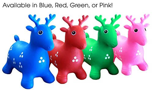 - Feature : SUPERIOR VALUE: RECEIVE A BONUS hand pump (over $15 value) ABSOLUTELY FREE! **Limited Quantity!** This complete bundle includes: A pink bouncing deer + Reinflatable white plug + 90-Days replacement guarantee! - GUARANTEE! That's how much we believe in them. / YOUR CHILD WILL LOVE IT!: Imagine the laughter and the giggles as your princess bounces around the house on their Ruffio, the hopping animal reindeer. Ruffio will give your loved one lots of fun while enjoying a healthy activity. / SAFE AND STRONG: You can definitely count on your Ruffio to keep your children safe while they are able to travel to 'far off worlds'! Ruffio is made from extremely heavy duty durable eco-friendly material - soft latex and phthalate free vinyl. Full Size Length: 23in from nose to tail; Seat height: 11in; Body Height: 20in from ear to floor. / EASY TO USE: Easily inflated, and Ruffio the jumping party deer will stay in their shape for a long time. Ruffio is not only a load of fun, but it will help your baby (boy/girl) in developing their physical stamina, balance, and coordination. / A BEST SUMMER GIFT: Looking for a riding toy that is unique and not expensive? Then Ruffio is just what you need. All youngsters over age of 3 will definitely love this indoor/outdoor cowboys hopper! We can guarantee it. Small toddlers under 3 years old should be supervised.