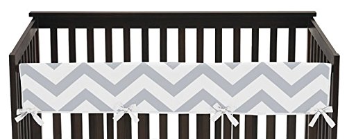 -. Title : Gray and White Chevron Zig Zag Long Front Rail Guard Baby Boy or Girl Teething Cover Protector Unisex Crib Wrap