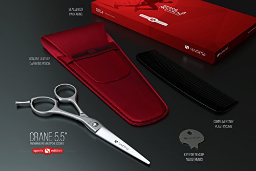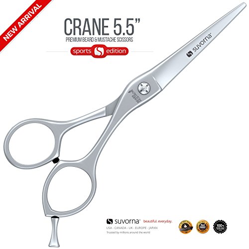Suvorna CRANE 5.5" Men's Beard & Mustache Scissors (Sports Edition) with Red Leather Pouch, Comb & Tension Adjustment key. Designed for Next Level of Beard Grooming, Trimming, Cutting & Styling.