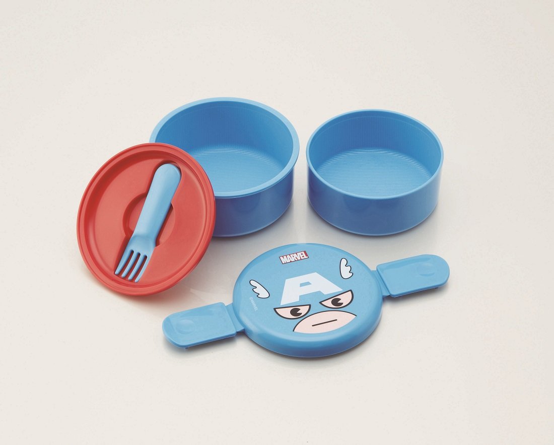 Captain America round lunch box two-stage 500ml with fork