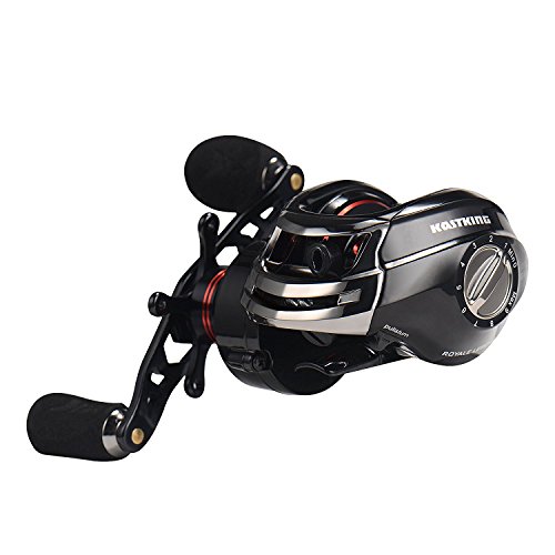 11+1 noise free high quality shielded stainless steel ball bearings quick, easy, and reliable magnetic dual brake system, with fully adjustable 10 level magnetic cast control and adjustable centrifugal brake. Brass gears, stainless steel spool shaft soft-touch, flat-sided, and durable foam handle grips are over-sized and slip resistant, helping you keep grip, even when wet smooth and reliable star drag system with a massive 13 lbs of stopping power smooth and durable ceramic insert line guide, allows for use with any type of line, including braid the new KastKing royal legend bait casting fishing reel delivers smooth consistent performance. A royal legend bait cast reel will keep you fishing all day long. Its over-sized flat-sided EVA foam soft grip reel handle reduces fatigue and delivers a soft, comfortable nonslip grip, even in the wettest conditions. Light weight, low profile bait caster design fits comfortably in your hand. Its quick access removable side plate gives easy access. This bait casting reels specs include 11 + 1 shielded stainless ball-bearings, 13 lbs./6 kg. Of drag from its smooth, reliable star drag system, 7.0:1 gear ratio, brass gears, and a CNC machined multi-ported aluminum whiffle styled spool that rides on a stainless steel shaft offers maximum strength with less weight. Its sleek black color and bold new look along with it dynamic design gives you the look, feel, strength, and reliability expected from a high price premium bait casting reel at a fraction of the cost. The new KastKing royal legend casting reel is saltwater approved. The royal legend makes a great combo when Matched to a KastKing bait casting rod. A cut above its predecessor, the KastKing royal legend offers more power, more speed and a bolder look.".Feature