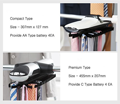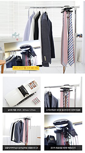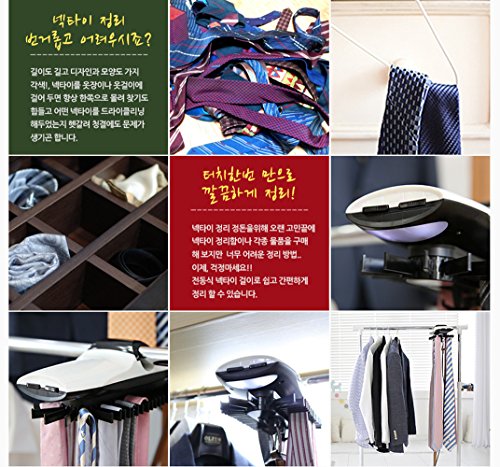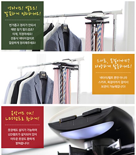 - Feature : Automatic Hanger Electric Tie Hangers Belt Tie Neck Hanger Rack 45 tie 4 belt. Compact Type / Automatic Dress room System. Worldwide Tie Hanger and Car Accessory Brand KMTC ! New Launching / 1Min Setting. / 45 Tie and 4 Belt able / Lightweight and Compact size. / Stylish design - Design is the fit with the surrounding environment. Clean and smooth finish is high quality. / Easy to operate! - / Easy to install - Wardrobe and hangers can be installed on Anyone can install 1-minute. / Size - 307mm x 127mm / Provide AA Type Battery 4EA / Scarf, necklace etc cleanup
