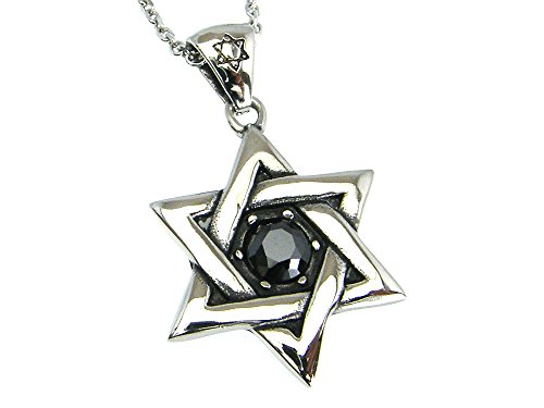 -. Title : 六芒星 (ダビデの星) ブラック クリスタル ペンダント ステンレス シルバー ネックレス ヘキサグラム 【アレルギー対策】賢者の石