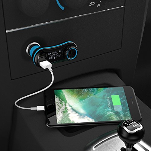 FM TRANSMITTER: Transmit your music or voice call wirelessly through FM radio from your mobile devices to the car stereo system. Built-in microphone allows you to take a phone call without holding your phone.