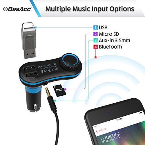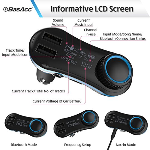 Package Includes:- 1 x BasAcc Bluetooth FM Transmitter w/2 USB Ports Car Charger