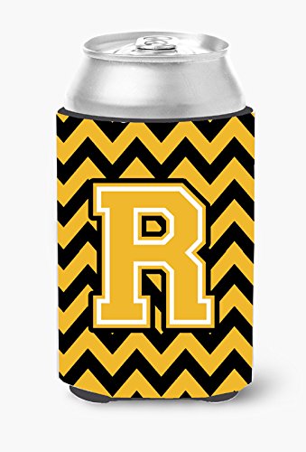 Caroline's Treasures CJ1053-RCC Letter R Chevron Black and Gold Can or Bottle Hugger, Multicolor