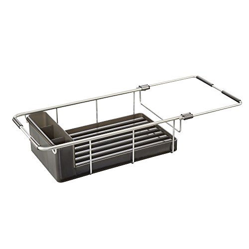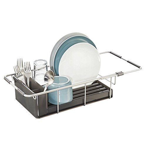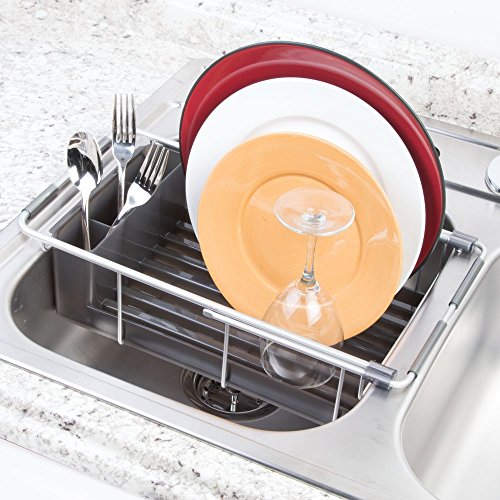 InterDesign Metro Rustproof Aluminum Over-the-Sink Dish Drainer Rack for Drying Glasses, Silverware, Bowls, Plates - Silver/Smoke
