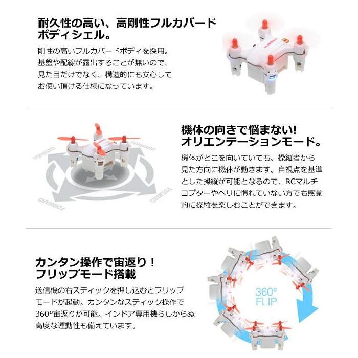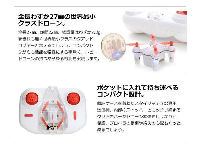 全長わずか27mmと、世界最小クラスの極小ホビードローン。収納ケースを兼ねたスタイリッシュな専用送信機に入れて、持ち運びもラクラク!コンパクトながらも機能を犠牲にする事無く、360度フリップ、操縦者視点で操縦可能なオリエンテーションモード・スピード切替え等、ホビードローンの持つあらゆる機能を実現します。 |