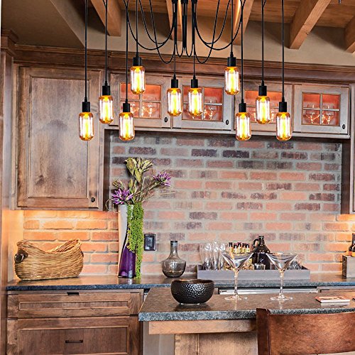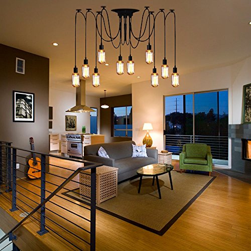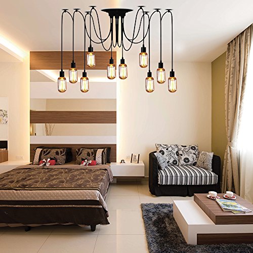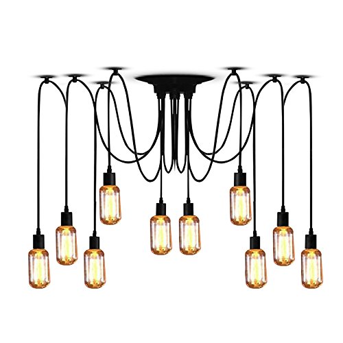 Veesee 10 Arms Industrial Ceiling Spider Lamp,DIY Retro E26 Edison Bulb Hanging Chandelier Lights,10 Head Adjustable Modern Chic Pendant Lighting for Bedrooms Dinning Rooms Living Room Kitchen Island