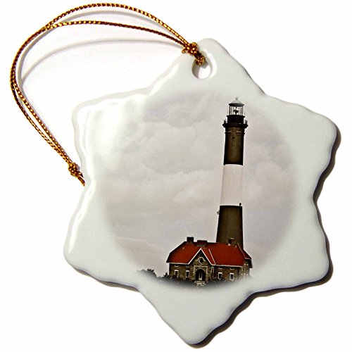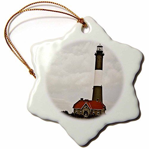 3dRose orn_112587_1 Fire Island Lighthouse-Snowflake Ornament, Porcelain, 3-Inch