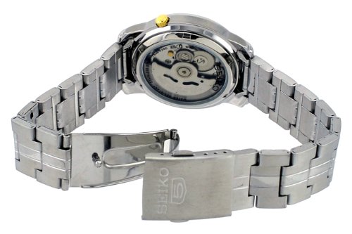 -. Feature : Japan 21 Jewels Automatic Self-Winding Movement (Caliber 7S26) / Stainless Steel Case and Band, Push Button Deployment Clasp / Hardlex Mineral Crystal, Day/Date Display with Spanish Option, Luminous Hands / Case Size: 37.5mm Diameter, 10.7mm Thickness / Water Resistant - 30M, Transparent Screw Down Caseback