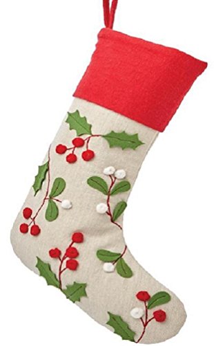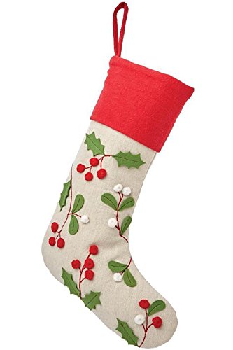 Martha Stewart Living Holly and Berries Christmas Stocking, Red Trim