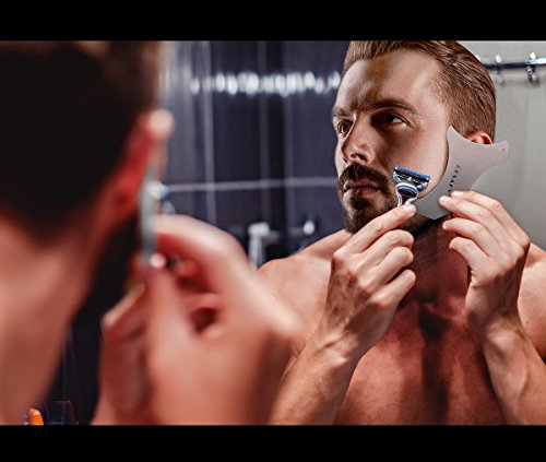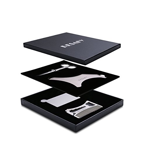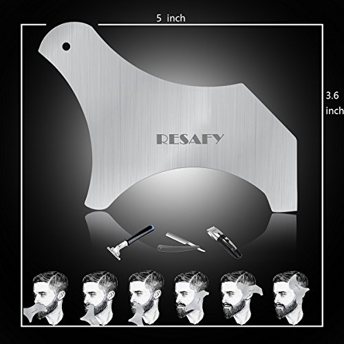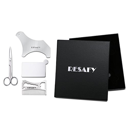 Resafy Stainless steel Beard Template Shaving Tool Comb Scissors Mirror Set Template Kit for Trimming and Grooming in Premium Gift Box