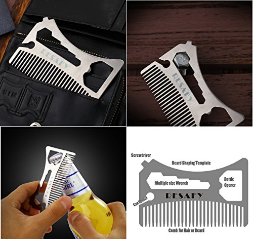 Resafy Stainless Steel Hair Beard Wallet Comb with Bottle Opener Screwdriver Wrench