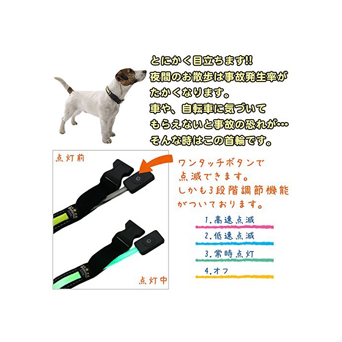 원본상품명:ファ?プラスト ナイトカラ? M NIGHT MEDIUM 犬 くびわ 首輪 首回36から51cm 光る 夜 散? 点? ?光