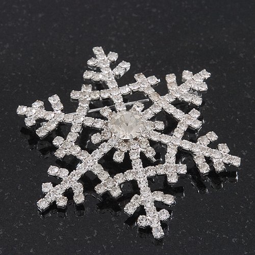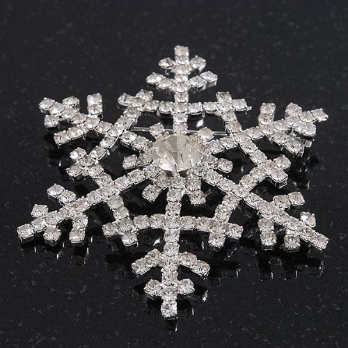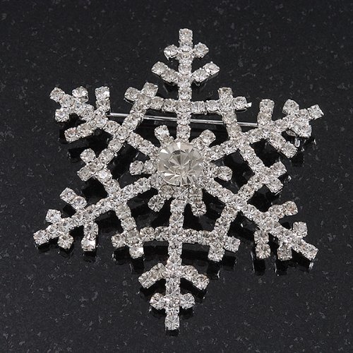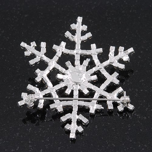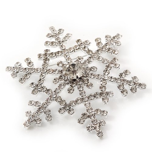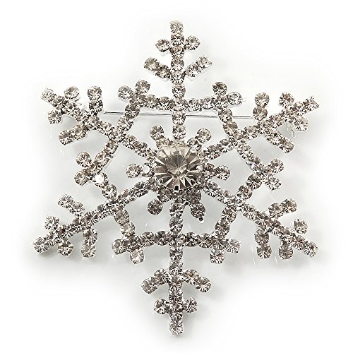 -. Title : Clear Swarovski Crystal 'Christmas Snowflake' Brooch In Silver Plating - 5.5cm Diameter