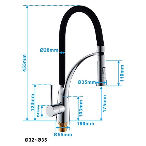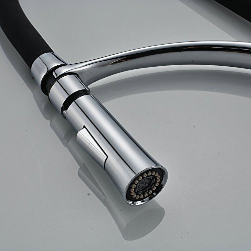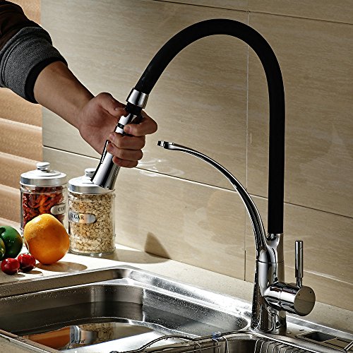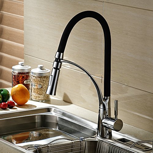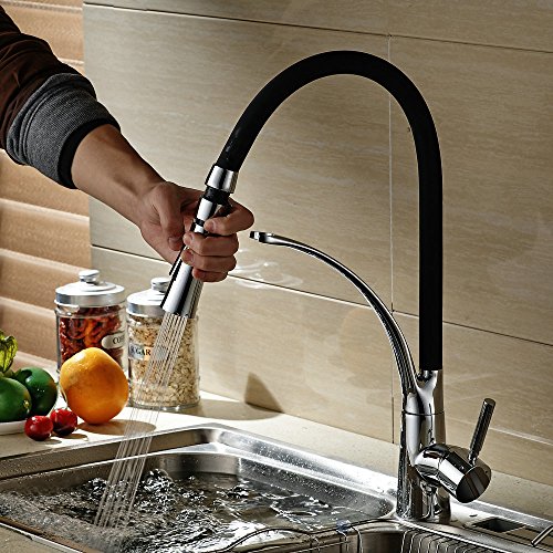 Hiendure Rainbow Series Solid Brass Chrome Pull Out Rubber Hose Kitchen Sink Faucet,Black