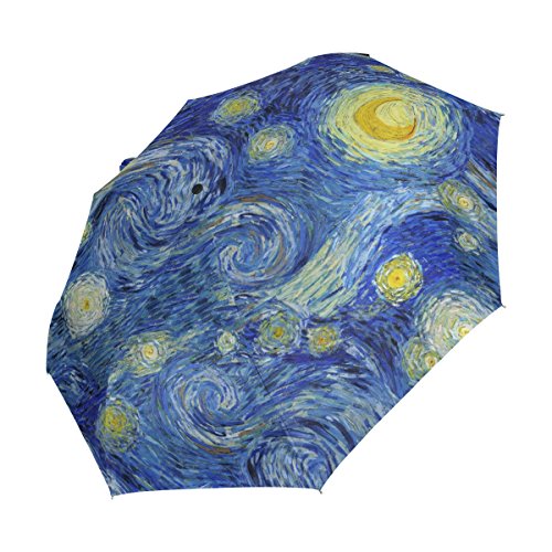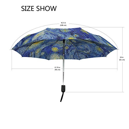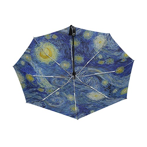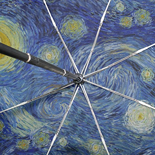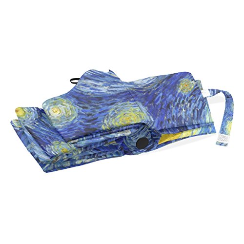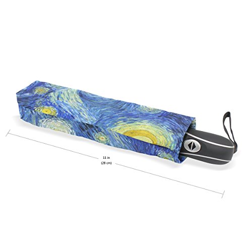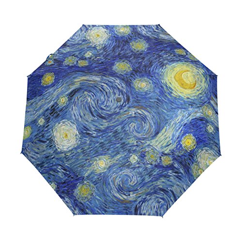 -. Title : WOZO Oil Painting Starry Night Galaxy 3 Folds Auto Open Close Umbrella