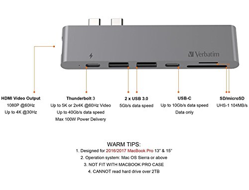 Verbatim HDMI HubThis Adapter is the 1st hub designed specifically for the 2017 MacBook Pro.